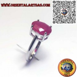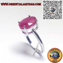 Classic solitaire ring in Sterling Silver 925 mounting a precious oval-cut Natural Ruby. The four-prong setting is essential and functional, designed to capture and reflect maximum light onto the gem.