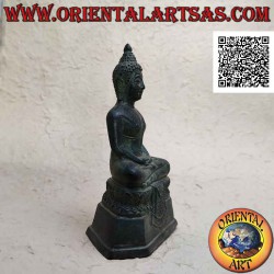The dhyana Buddha statue is shown with both hands resting on the lap. The back of the right hand rests on the palm of the left hand. The thumbs often touch, forming the mystical triangle. This is the mudra of meditation, which symbolizes wisdom. The Buddha used this posture during his final meditation under the Bodhi tree, when he attained enlightenment.