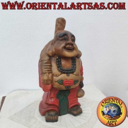 Elegant Happy Buddha sculpture (Hotei) handmade in teak wood from Thailand. Artisanally hand-painted, this statue represents prosperity, joy and abundance according to Eastern tradition. An authentic unique piece, perfect for enriching zen spaces, ethnic decor or Asian art collections. Dimensions 32x15x15 cm, weight 1500 grams.