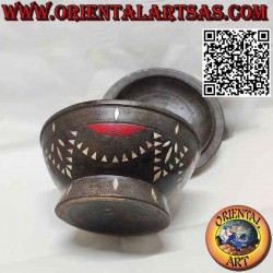 Antique round box with precious mahogany wood base with mother-of-pearl inlays, handmade in Indonesia on the island of Lombok, unique piece