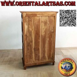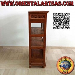 Linear showcase with openwork floral decoration, with two doors and two drawers made in Indonesia on the island of Java with solid antique teak wood in the 1970s. The piece of furniture will be delivered complete with glass and finished down to the smallest detail. The Preggi of indestructible Teak not attackable by woodworm and by anyone else ....