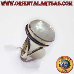 Elegant 925 Sterling Silver ring featuring a stunning oval rainbow moonstone of 13x16 mm, set with a smooth bezel and refined V-setting. Symbol of intuition, femininity and serenity. Height 19 mm, weight 5 grams. A magical piece with iridescent reflections.