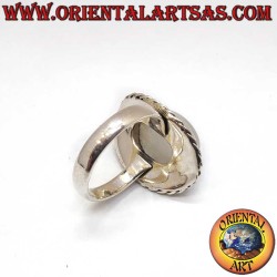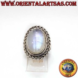 Enchanting 925 Sterling Silver ring with a stunning oval rainbow moonstone of 12x16 mm, surrounded by a refined silver braid. Symbol of intuition, femininity and serenity. Frame size 22x17 mm, thickness 9 mm, weight 6.5 grams. A magical piece with iridescent reflections.