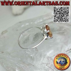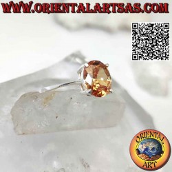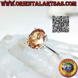• Silver ring with oval faceted champagne zircon set in a smooth double setting