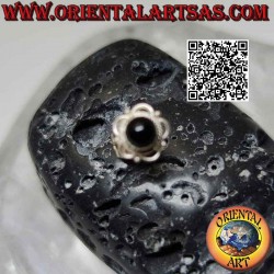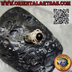 Mini earring in silver, round cabochon stone surrounded by interweaving and arches