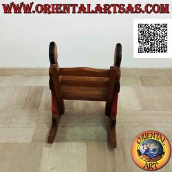 Beautiful rocking chair for children in solid Suar wood with engraved student with green painted t-shirt, on both sides handmade