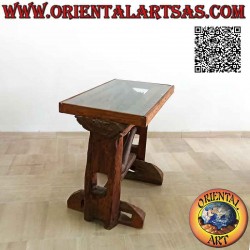 Table with glass top in the trunk in antique teak wood recycled from agricultural vehicles (85h x 100x55)