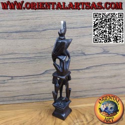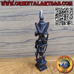 Beautiful rare and ancient ebony sculpture of an oil lamp with three men supporting a seated man with a pelican on his shoulders who in turn supports an illuminated bat. This rare sculpture was made in Borneo by the Dayaks. Unique one-of-a-kind piece purchased in 1985 in western Bornio from a local art collector.