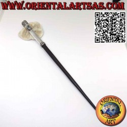 Ebony hair pin embellished with worked 925‰ silver cap and set natural faceted aquamarine, handmade in Indonesia with nickel-free hypoallergenic 925‰ silver the surface is partially burnished to ensure its beauty over the years, the weight of the silver part and gr. 7.5 cm long. 5.8