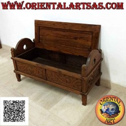 Jodang is a teak wood chest from the island of Madura (Indonesia). Also known as a wedding casket, it was carved by the groom for the bride, then filled with gifts for the bride (representing her dowry) and carried in procession on the wedding day by inserting a bamboo stick into the holes.