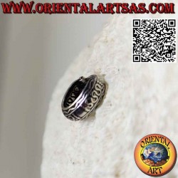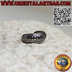 Wide rounded circle silver earrings chiseled with 12 mm waves