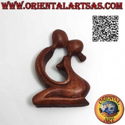 10 cm sculpture of the kiss of a kneeling couple in suar wood