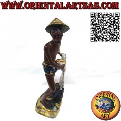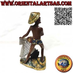 Sculpture depicting a fisherman with a net handmade by local artisans specialized in the processing of precious woods. The sculpture is composed of a single block of wood engraved as a work of art. (single piece )