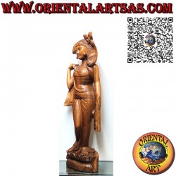 Sculpture of a Balinese woman on a lotus flower with traditional cable cover and dress, handmade by skilled craftsmen in a single block of suar wood, 1 meter high. single piece