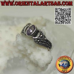 La pietra incastonata è una ametista naturale sfaccettata, mentre lateralmente sono incastonate una serie di marcassiti.