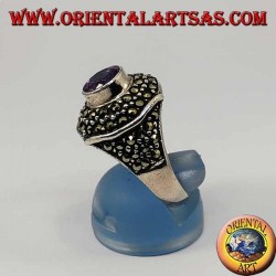 Anello in argento a rombo con marcasite e ametista ovale naturale
