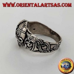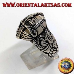 L'elmo è uno degli accorgimenti difensivi più antichi usato per garantire la propria incolumità durante gli scontri. Anello in argento 925‰ anallergico. La superficie è parzialmente brunita e non è trattata né placcata.