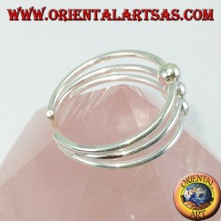 Anello in argento da piedi o falange a tre fili con tre sfere