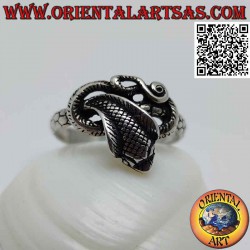 Anello in argento a forma di serpente "cobra" sagomato e attorcigliato