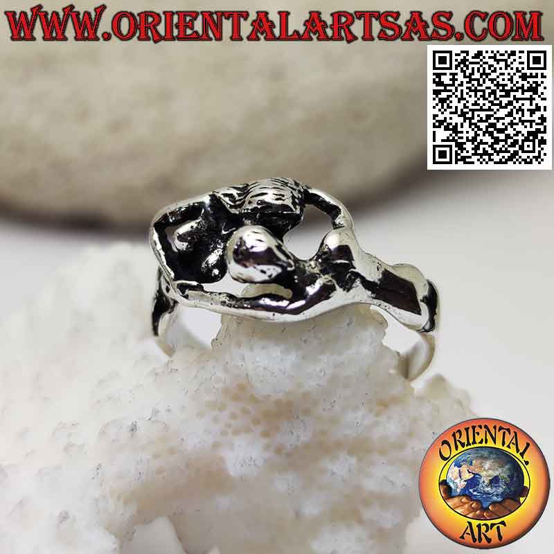Anello in argento l'abbraccio e un bacio intenso di una coppia di innamorati nudi realizzato in solido argento 925 ‰ anallergico. senza nickel, simbolo di amore