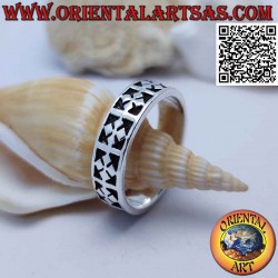 Anello in argento a fedina con croci di rombi incise in bassorilievo