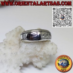 Anello in argento a fascia lavorata con rombi e linee spezzate incisi