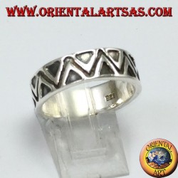• Anello a fascia in argento, con triangoli a bassorilievo