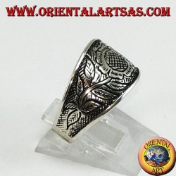 Anello a fedina in argento con decoro floreale continuo in altorilievo
