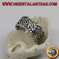 Anello fedina in argento con spirali e disegni maori in bassorilievo