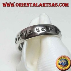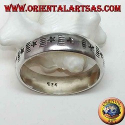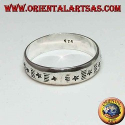 Anello in argento, a fedina con stelline e righi incisi alternati