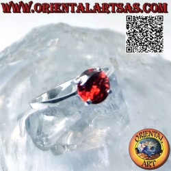 Anello in argento con granato sfaccettato tondo incastonato su montatura liscia doppia