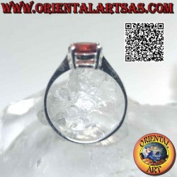 Anello in stile solitario in argento 925‰ anallergico con pietra tonda da 8 Ø mm incastonata e sopraelevata.