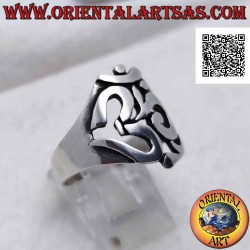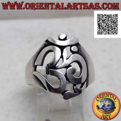 Anello in argento liscio sagomato a forma di sillaba sanscrita "ॐ" Oṃ traforata