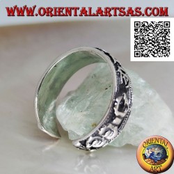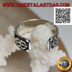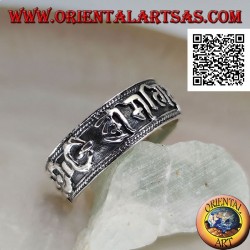 Anello in argento a fascia con Vajra e Mantra Oṃ Maṇi Padme Hūṃ