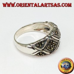 Anello in argento con marcasite fascia bombata divisa ad X
