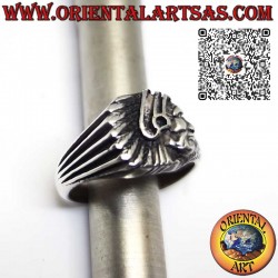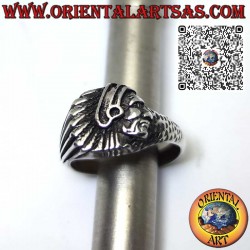 Anello in argento con testa di Indiano nativi d'America di profilo, realizzato in solido argento 925 ‰ anallergico. La superficie è parzialmente brunita per mettere in risalto la lavorazione e garantire la sua bellezza col passare degli anni. Senza nickel
