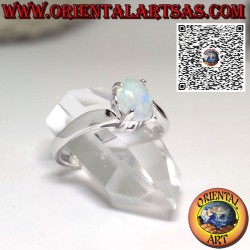 Fascino etereo con l'anello in argento con opale ovale arlecchino incastonato in una montatura semplice ma asimmetrica Un'eleganza radiante e senza tempo, realizzato in solido argento 925 anallergico senza nickel