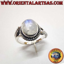 legante anello in Argento 925 con una gemma ovale di Pietra di Luna Arcobaleno (8x10 mm). La pietra dell'intuizione e del Divino Femminile regala una spettacolare iridescenza azzurra. Perfetto per ogni occasione.
