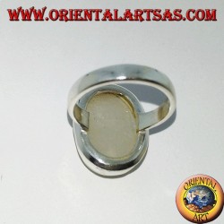 Anello in argento con pietra di luna ovale cabochon su montatura...