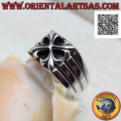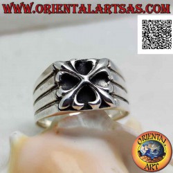 Anello in argento con croce gigliata in altorilievo e linee incise sui lati