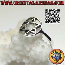 Anello in argento, stella di David o sigillo di Salomone inscritto nel cerchio traforato