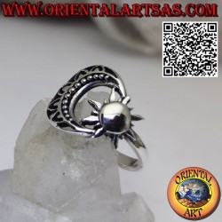 Anello sole nelle falce della luna realizzato in solido argento 925