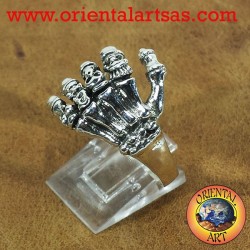 Anello in argento, teschio del vampiro con denti canini aguzzi e...