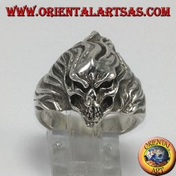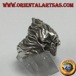 Anello in argento, teschio del vampiro con denti canini aguzzi e...