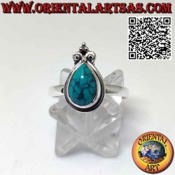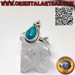 Anello in argento con turchese a goccia a bordo liscio e giglio a corona