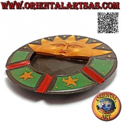 Posacenere tondo piatto con decorazione dipinta "sole e luna" in legno di balsa (grande)