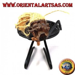 Posacenere in ferro battuto, omino primitivo seduto con piattino...