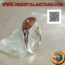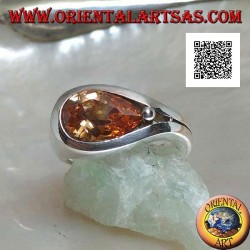 Anello in argento rodiato con zircone champagne a goccia trasversale su montatura liscia