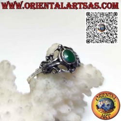 Anello in argento con agata verde tonda e decorazioni barocche, piccolo