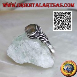 Anello in argento con labradorite tonda al centro di un filo arrotolato